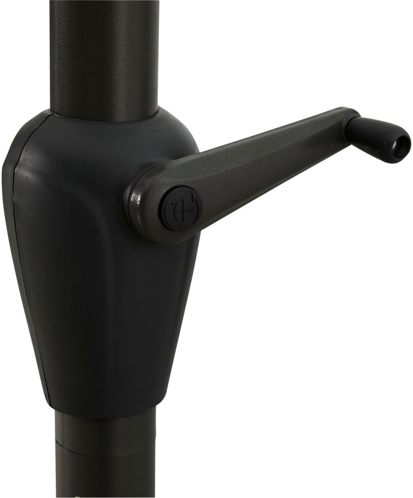 Vodoodbojno poliestersko platno sa UV-zaštitom i aluminijumska šipka. Sa nagibnim mehanizmom, ručkom za otvaranje i ventilacionim otvorom. Ø300xV246 cm.