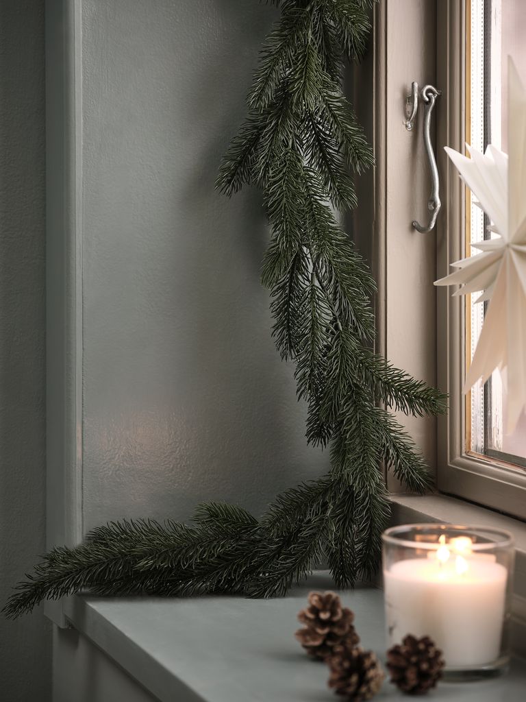 Tamno zeleni vijenac za unutrašnji prostor. Idealan za dekoraciju tokom novogodišnjih praznika, ovaj vijenac donosi prirodan i svjež izgled vašem domu. Lagan je i jednostavan za postavljanje, omogućavajući vam da ga lako okačite na vrata, zidove ili prozore. D180 cm