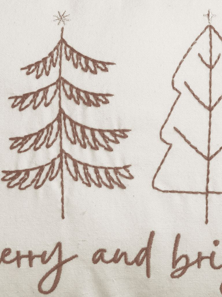 Ukrasni jastuk sa navlakom od 100% pamuka u bež boji. Dizajn se odlikuje vezom jelki sa srebrnim zvezdama na vrhu, što dodaje suptilan praznični dodir sofi ili fotelji. Patent-zatvarač omogućava lako skidanje navlake radi pranja. 35x50 cm