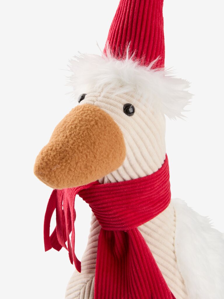 Novogodišnja patka sa crvenim šalom i kapom Deda Mraza. Ova slatka novogodišnja dekoracija stvara ušuškanu atmosferu tokom novogodišnjih praznika. Veličina je čini pogodnom za postavljanje na pod. Š12 x D28 x V48 cm Šifra artikla: 6112291