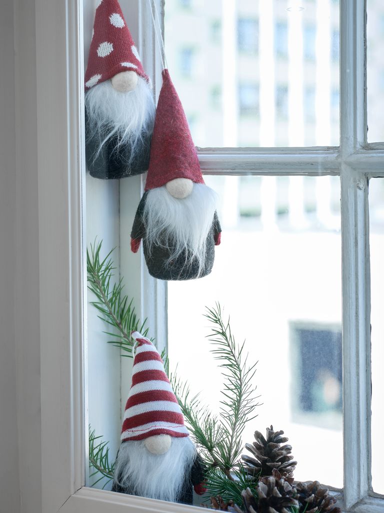 Novogodišnji vilenjak u tradicionalnim crvenim, belim i sivim bojama. Ova šarmantna figura je idealna za dekorisanje police ili prozorske daske tokom novogodišnjih praznika. Dostupan u različitim dizajnima. Ø7 x V17 cm Šifra artikla: 6131700