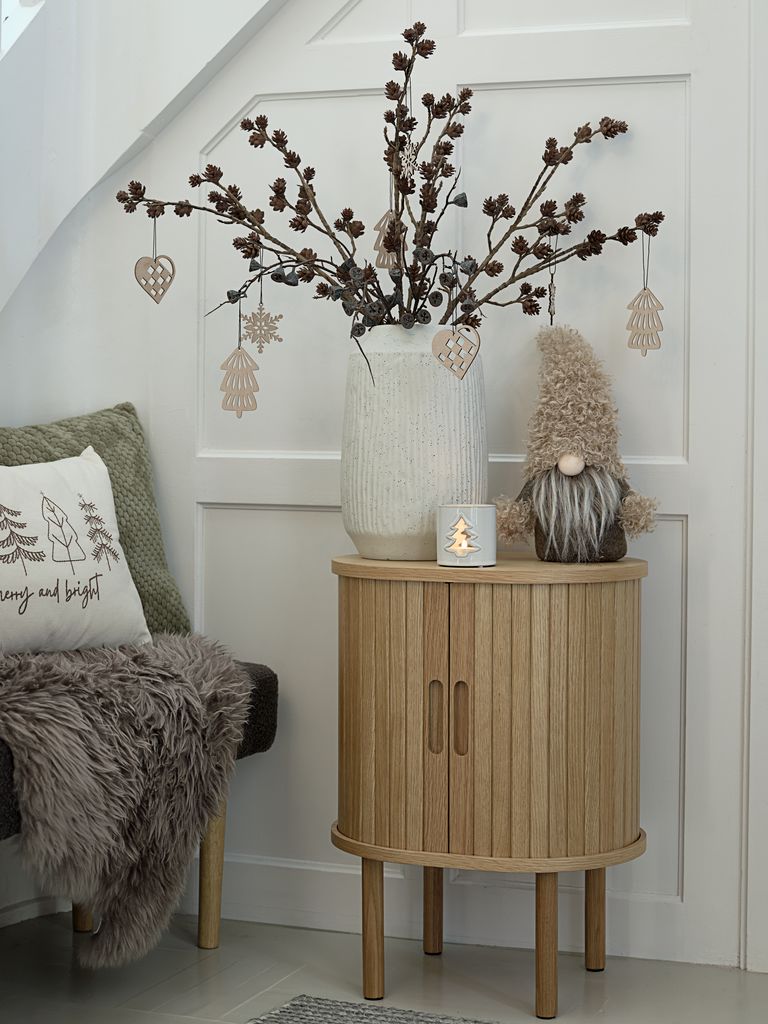 Novogodišnji vilenjak u neutralnim bež i braon bojama. Sa pahuljastom kapom i punom bradom koja unosi razigran izgled u vaš praznični dekor. Š13xD20xV41 cm