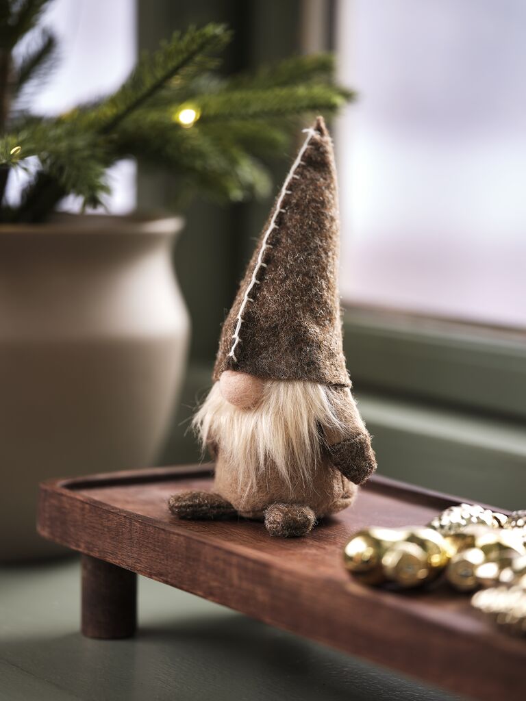 Braon novogodišnji vilenjak sa jednostavnim dizajnom. Svojim šarmantnim, svedenim izgledom uklapa se u većinu novogodišnjih tema. Može se postaviti na policu, komodu ili prozorsku dasku. Š8xD7xV15 cm