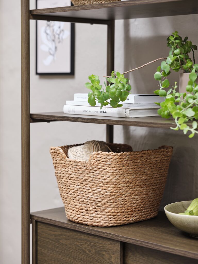 Korpa napravljena od prirodnog rogoza. Njena pletena tekstura nudi dekorativan način za organizovanje manjih predmeta. Integrisane ručke olakšavaju podizanje i premeštanje korpe. Š23xD28xV19 cm