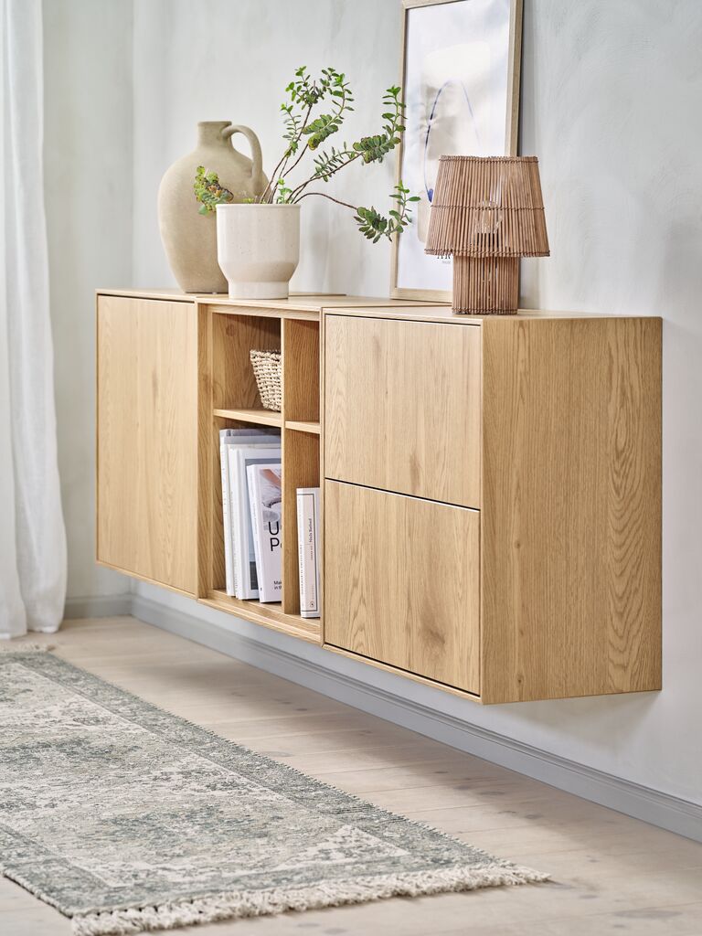 Ukrasni furnir. Može da se koristi samostalno ili u kombinaciji sa drugim GEDSER modulima. Montira se na zid. Š55xV55xDub30 cm