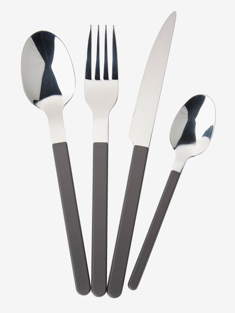 Set pribora za jelo modernog dizajna, sa tamno braon drškama i od izdržljivog nerđajućeg čelika. Ova kolekcija od 16 delova obezbeđuje kompletan pribor za četiri osobe. Set je pogodan za pranje u mašini za sudove radi lakšeg održavanja.