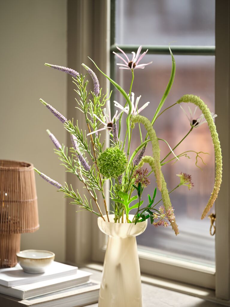 Veštački buket koji dočarava izgled aranžmana od prirodnog poljskog cveća. Pruža trajnu lepotu bez potrebe za održavanjem, omogućavajući vam da tokom cele godine uživate u svežem dašku botanike u svom domu. V70 cm