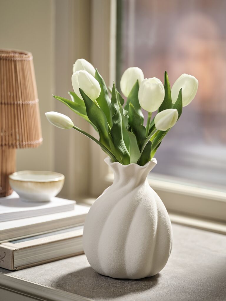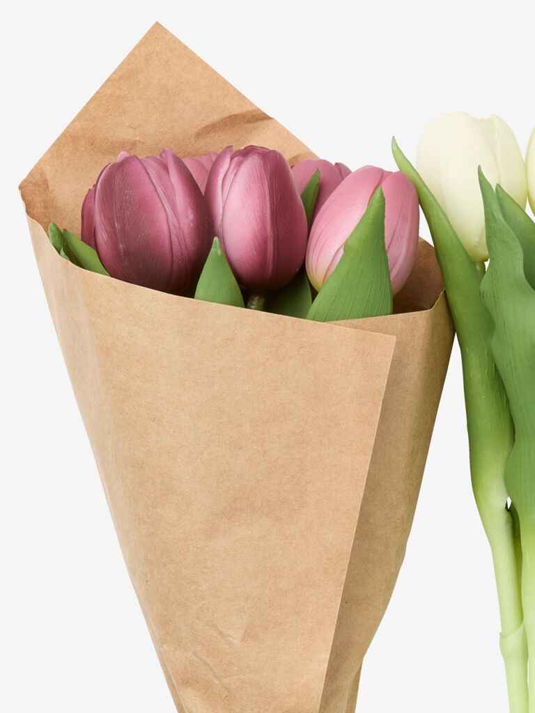 Veštački buket koji unosi trajnu lepotu lala u vaš dom bez ikakve potrebe za održavanjem. Cveće ima realističan dizajn i dostupno je u pepeljasto roze ili prljavo beloj boji. Dostupno u raznim bojama i prodaje se pojedinačno. V30 cm