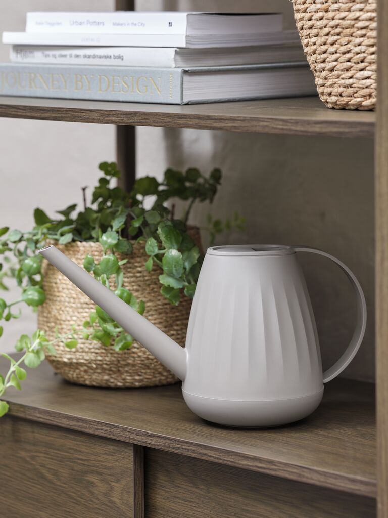 Kantica za zalivanje toplo sive boje, zapremine 2 litra. Njen dugačak kljun omogućava lako zalivanje biljaka u saksijama i žardinjerama. Š14xD34xV18 cm